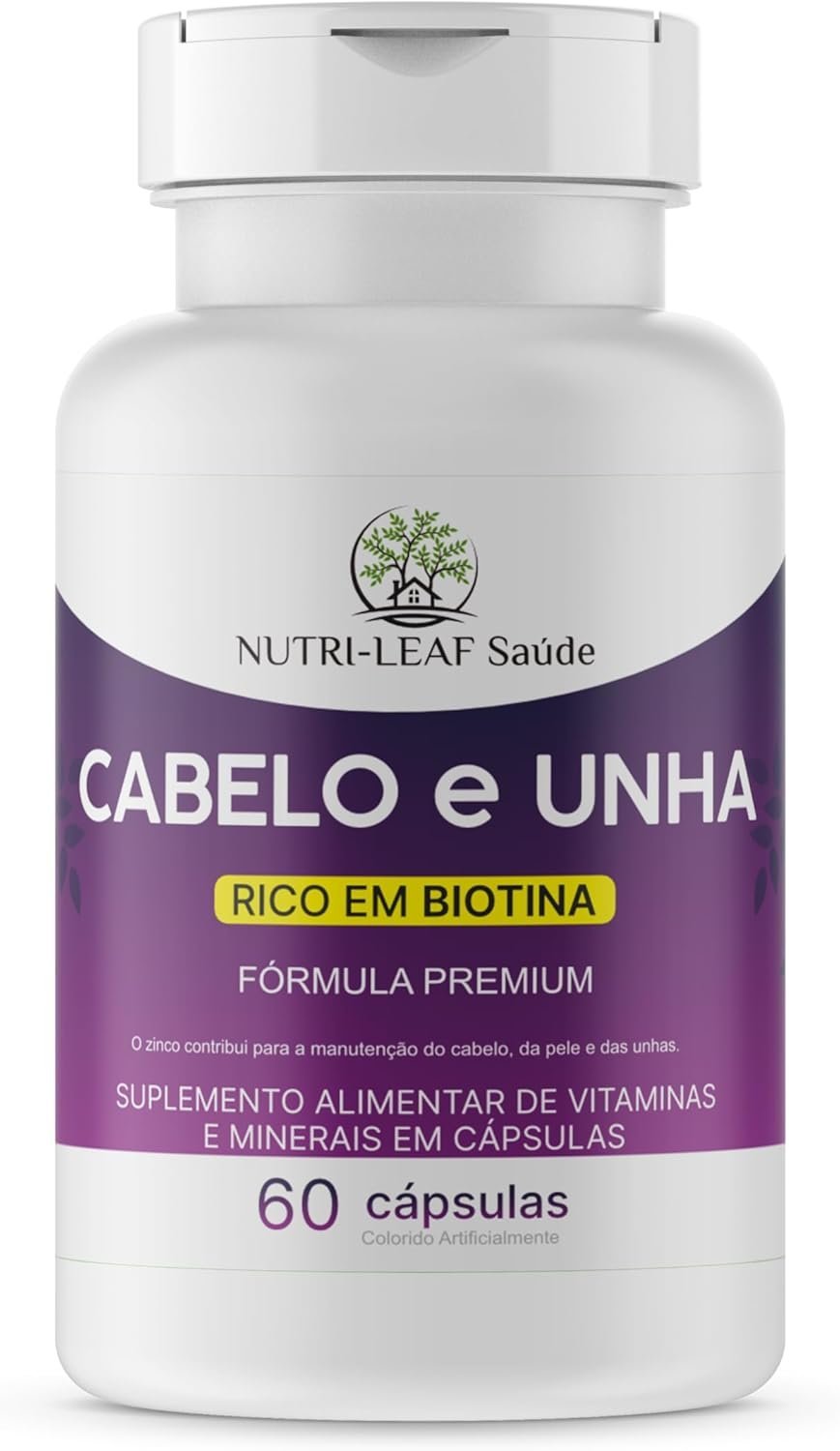 Em até 1x de R$130,04 sem jurosEm até 12x de R$12,30 com juros À vistaR$117,04no PixCabelo e Unha Vitamina para Crescimento Capilar Unhas Fortes e Pele Saudável com Biotina Zinco e 16 Vitaminas Essenciais 60 Cápsulas da NUTRI-LEAF Saúde