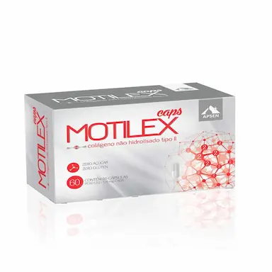 O que é e para que serve Motilex Caps? Motilex Caps é um suplemento alimentar em cápsulas à base de colágeno tipo II não hidrolisado, indicado para estimular a produção de colágeno pelo organismo e diminuir a flacidez. Sua fórmula rica em vitamina c age na formação e reconstituição da cartilagem articular estimulando a maior produção de colágeno no organismo. Além disso, não contém sódio, açúcar, lactose e glúten. Caixa contém: 60 cápsulas. Por que consumir colágeno? O colágeno é uma proteína naturalmente presente em nosso corpo, principalmente em tecidos como ossos, dentes, tendões e músculos, sendo que o colágeno tipo II é predominante na cartilagem. Porém, com o passar do tempo, por fatores como dieta e estilo de vida desequilibrados e questões de saúde, a fabricação natural dessa proteína pelo nosso organismo diminui. Por isso, especialistas indicam ingerir suplementos de colágeno para auxiliar na firmeza e hidratação da pele, por exemplo, e para atenuar os sintomas da artrose e de outros males que atacam as articulações. Como tomar Motilex Caps? Ingerir 1 cápsula ao dia. Importante Procure sempre um médico ou especialista antes de fazer uso de qualquer substância. Ingredientes Colágeno não hidrolisado tipo II. Alérgicos: Não contém sódio, açúcar, lactose e glúten. Advertências Não ingerir em caso de sensibilidade a algum dos componentes da fórmula. Este produto não substitui uma alimentação equilibrada e seu consumo deve ser orientado por um profissional. Gestantes, nutrizes e crianças somente devem consumir este produto sob orientação médica. Consulte seu médico ou nutricionista antes de fazer o uso de suplementos. Não exceder a recomendação diária. Somente o médico está apto a diagnosticar qualquer problema de saúde e prescrever o tratamento adequado. Conservar em local seco e arejado, ao abrigo da luz solar. Mantenha fora do alcance de crianças. As informações estão sujeitas a alterações. Sempre verifique a embalagem antes de consumir.